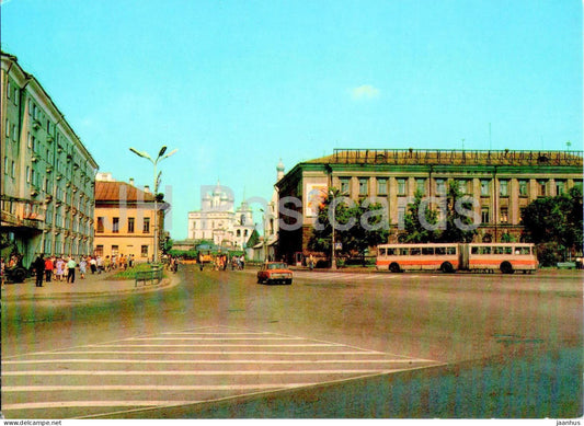 Pskov - Vue sur la place d'Octobre - voiture Zhiguli - bus - entier postal - 1982 - Russie URSS - inutilisé