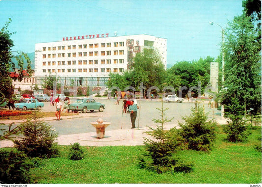 Oujhorod - Oujgorod - hôtel Oujhorod - voiture - Zhiguli - entier postal - 1979 - Ukraine URSS - inutilisé