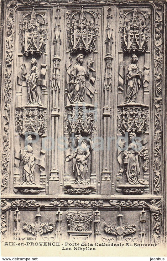 Aix en Provence - Porte de la Cathédrale St Sauveur - Les Sibylles - carte postale ancienne - France - inutilisée