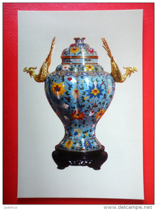 Vase cloisonné avec poignées phénix - Art et artisanat chinois - 1965 - République populaire de Chine - inutilisé