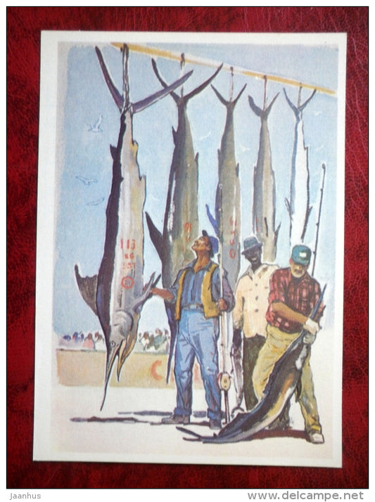 compétition de capture d'espadon - Illustration de P. Pavlinov - Cuba - jeux - 1981 - Russie URSS - inutilisé