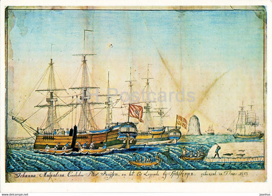 Baleiniers chassant les baleines et les phoques au large du Spitzberg 1803 - peinture de Hinrich Butt - navire - art danois - Danemark - inutilisé