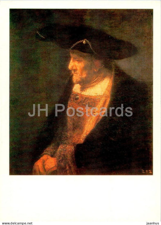 peinture de Rembrandt - Portrait d'un homme avec des perles sur son chapeau - Art néerlandais - 1987 - Russie URSS - inutilisé