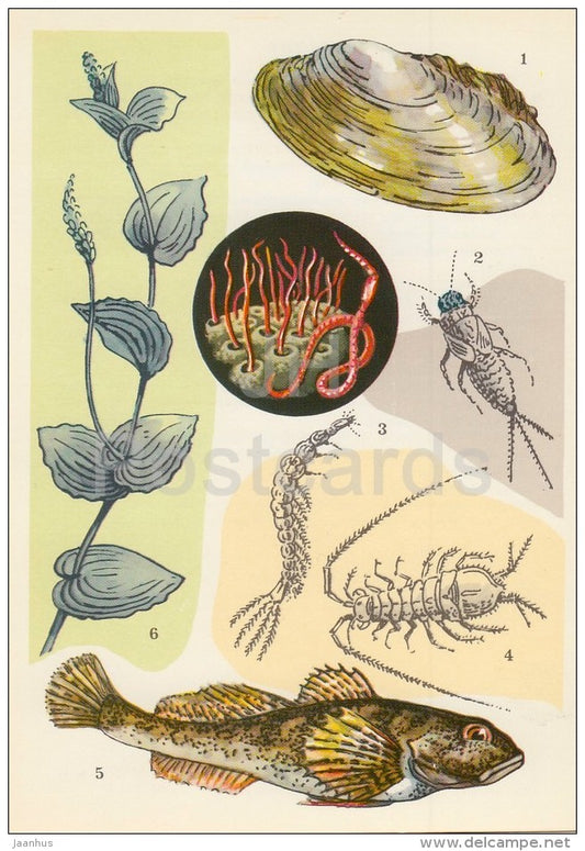 Barbotte européenne, poisson - Éphémère - Anodonta, coquille - Asellus Aquaticus - Vie dans l'eau - 1977 - Russie URSS - inutilisé