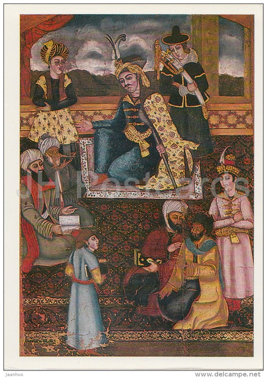 peinture du peintre inconnu - Le Shakh sur le trône entouré de poètes - Art iranien - 1984 - Russie URSS - inutilisé