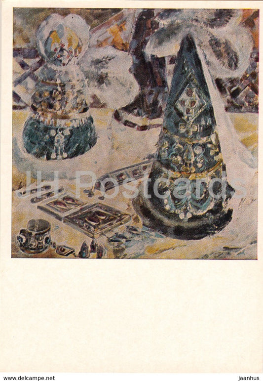 peinture de G. Ismailova - Couvre-chef national - Art du Kazakhstan - 1974 - Russie URSS - inutilisé