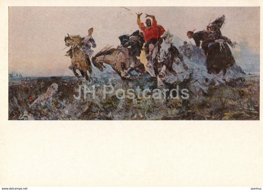 peinture de N. Nurmukhammedov - La steppe brûle - Art du Kazakhstan - 1974 - Russie URSS - inutilisé