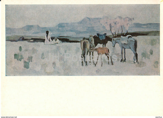 peinture de A. Kasteyev - Juments laitières - cheval - Art du Kazakhstan - 1974 - Russie URSS - inutilisé