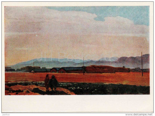peinture de S. Akylbekov - Le Soir, 1949 - art kirghize - inutilisé