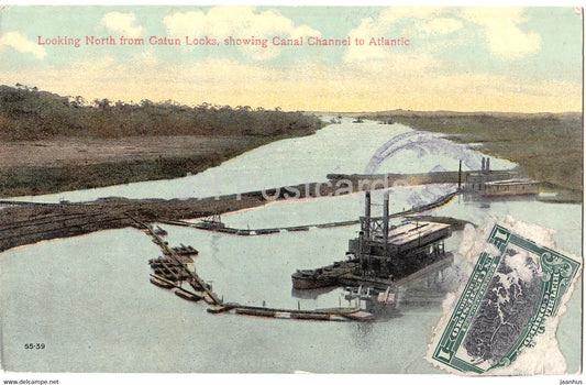 Panama - vers le nord depuis les écluses de Gatun montrant le canal canal vers l'Atlantique - carte postale ancienne - Panama - inutilisé