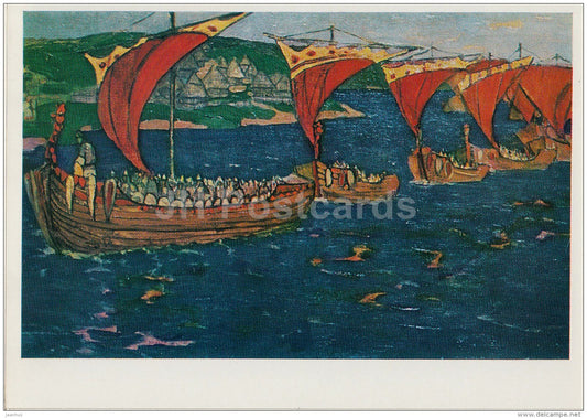 peinture de N. Roerich - Navires marchands d'outre-mer, début des années 1900 - Art russe - 1970 - Russie URSS - inutilisé