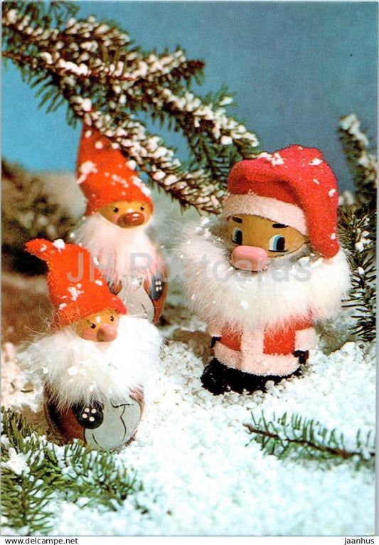 Carte de vœux du Nouvel An - poupées en bois en costumes folkloriques estoniens - 1983 - Estonie URSS - utilisée