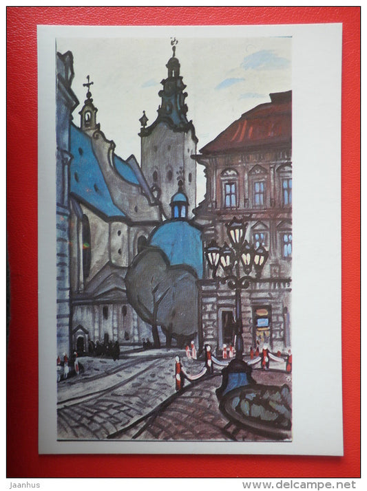 peinture de Youri Khimich . vue sur la Cathédrale. Lviv. Lvov - art ukrainien - inutilisé