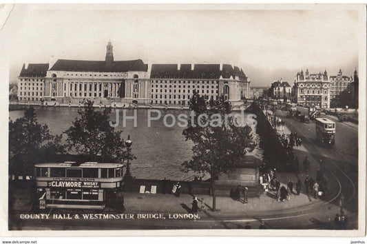 Londres - County Hall & Westminster Bridge - tram - 17 - carte postale ancienne - 1930 - Angleterre - Royaume-Uni - utilisé