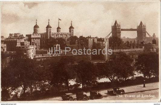 Londres - La Tour de Londres - voiture - carte postale ancienne - 1925 - Angleterre - Royaume-Uni - utilisé