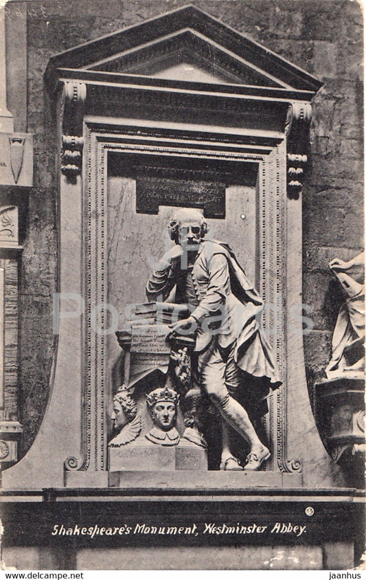 Londres - Shakespeare's Monument - Westminster Abbey - Valentine - carte postale ancienne - Angleterre - Royaume-Uni - occasion