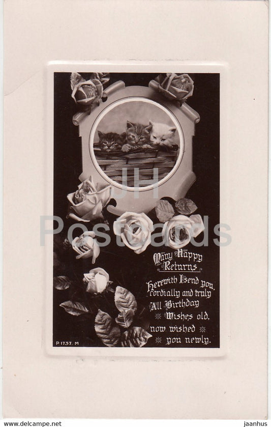 Carte de vœux d'anniversaire - Many Happy Returns - chaton - P 1737 - carte postale ancienne - 1908 - Royaume-Uni - utilisé