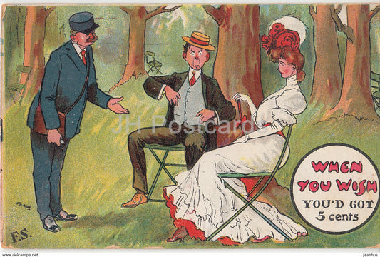 Quand tu souhaites, tu as 5 cents - illustration - FS - carte postale ancienne - Royaume-Uni - utilisé
