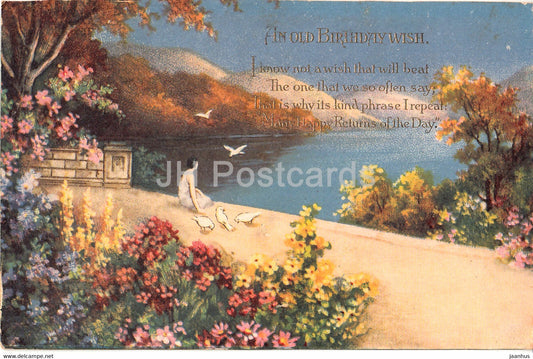 Carte de voeux d'anniversaire - Un vieux souhait d'anniversaire - illustration - carte postale ancienne - Royaume-Uni - utilisée