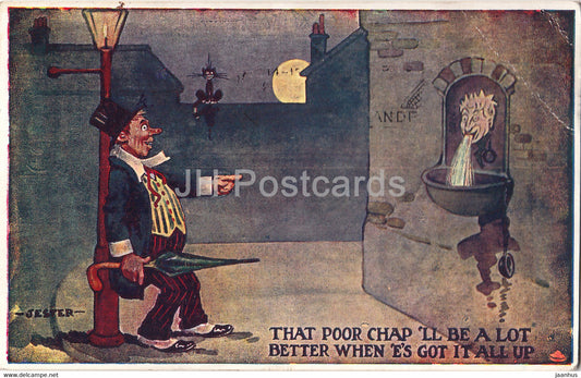 Ce pauvre type ira beaucoup mieux quand E aura tout compris - Jester - vieille carte postale - Angleterre - Royaume-Uni - utilisé