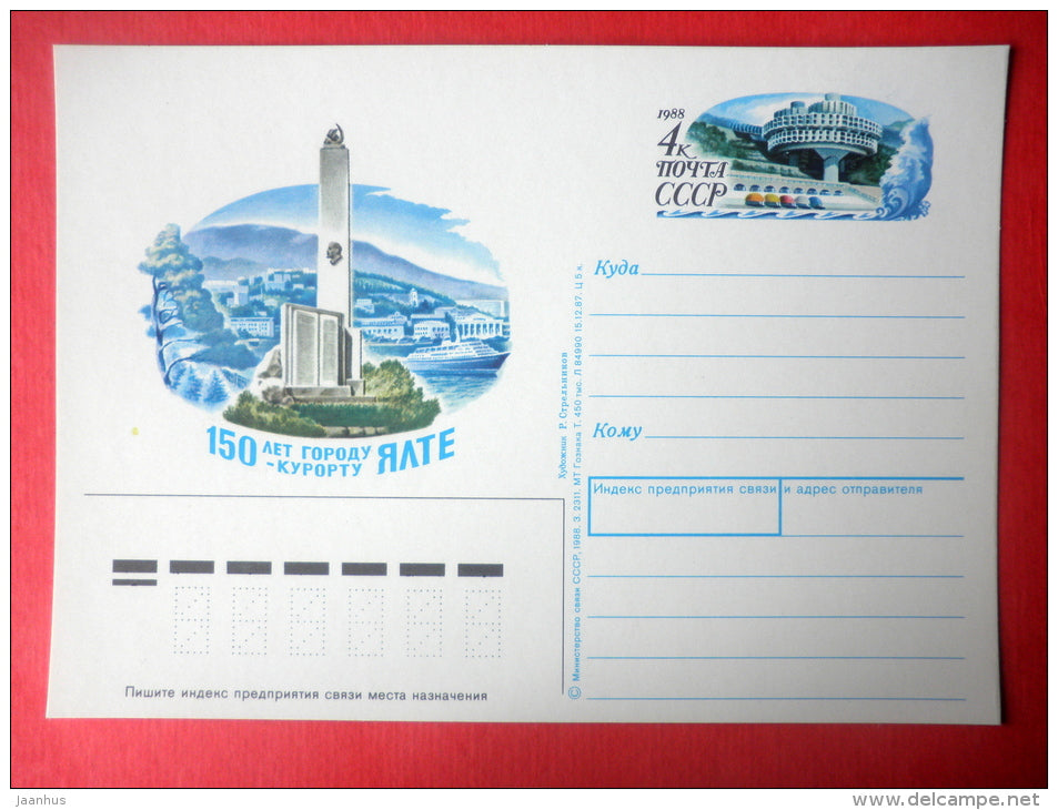 150e anniversaire de Yalta - carte de papeterie estampillée - 1988 - Russie URSS - inutilisée