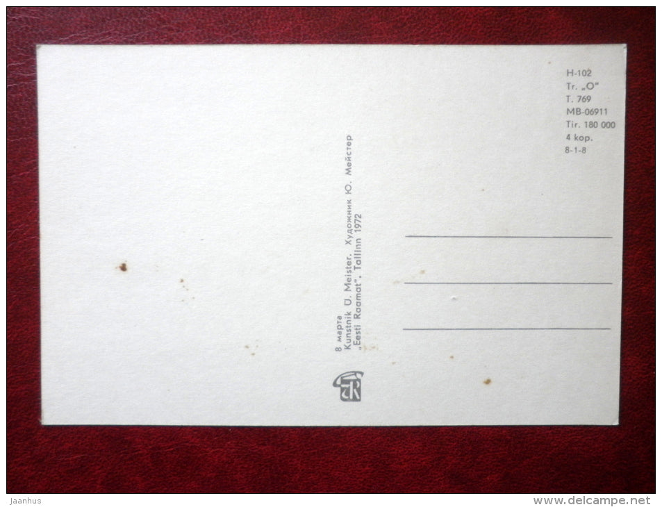 Carte de vœux du 8 mars - par Ü. Meister - fleurs - 1972 - Estonie URSS - inutilisé