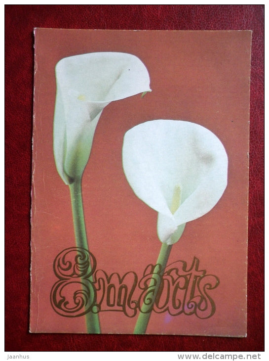 Carte de vœux du 8 mars - calla - fleurs - 1988 - Estonie URSS - inutilisée