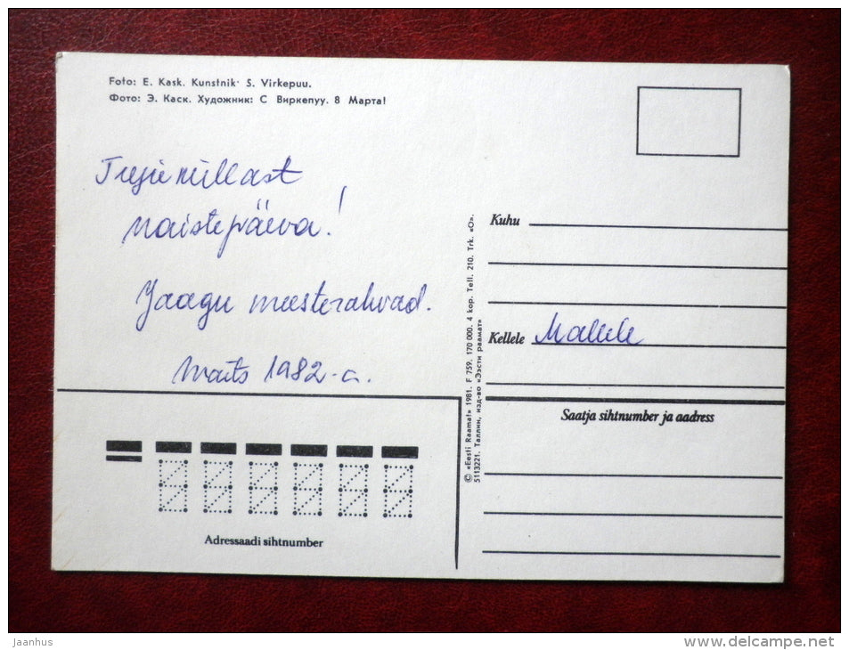 Carte de vœux du 8 mars - crocus - fleurs - 1981 - Estonie URSS - utilisée
