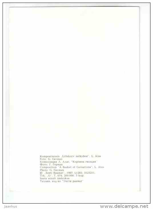 A Basket of Carnations 4 - fleurs - compositions - 1987 - Estonie URSS - inutilisé
