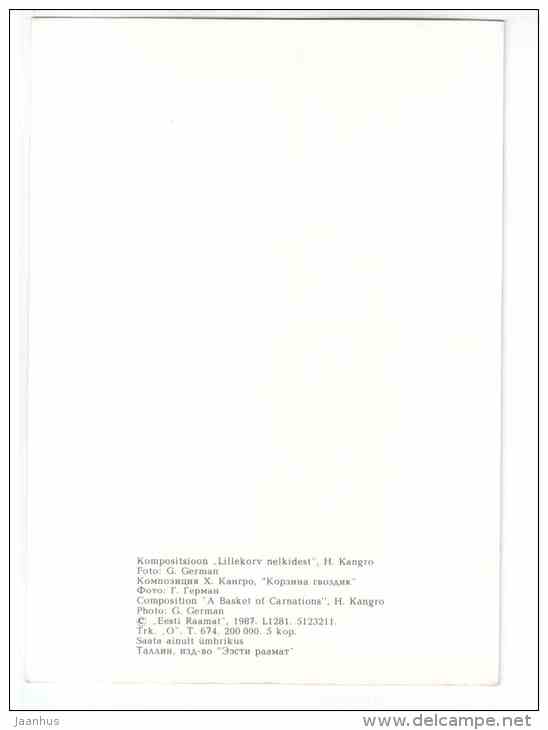 Un panier d'œillets - fleurs - compositions - 1987 - Estonie URSS - inutilisé