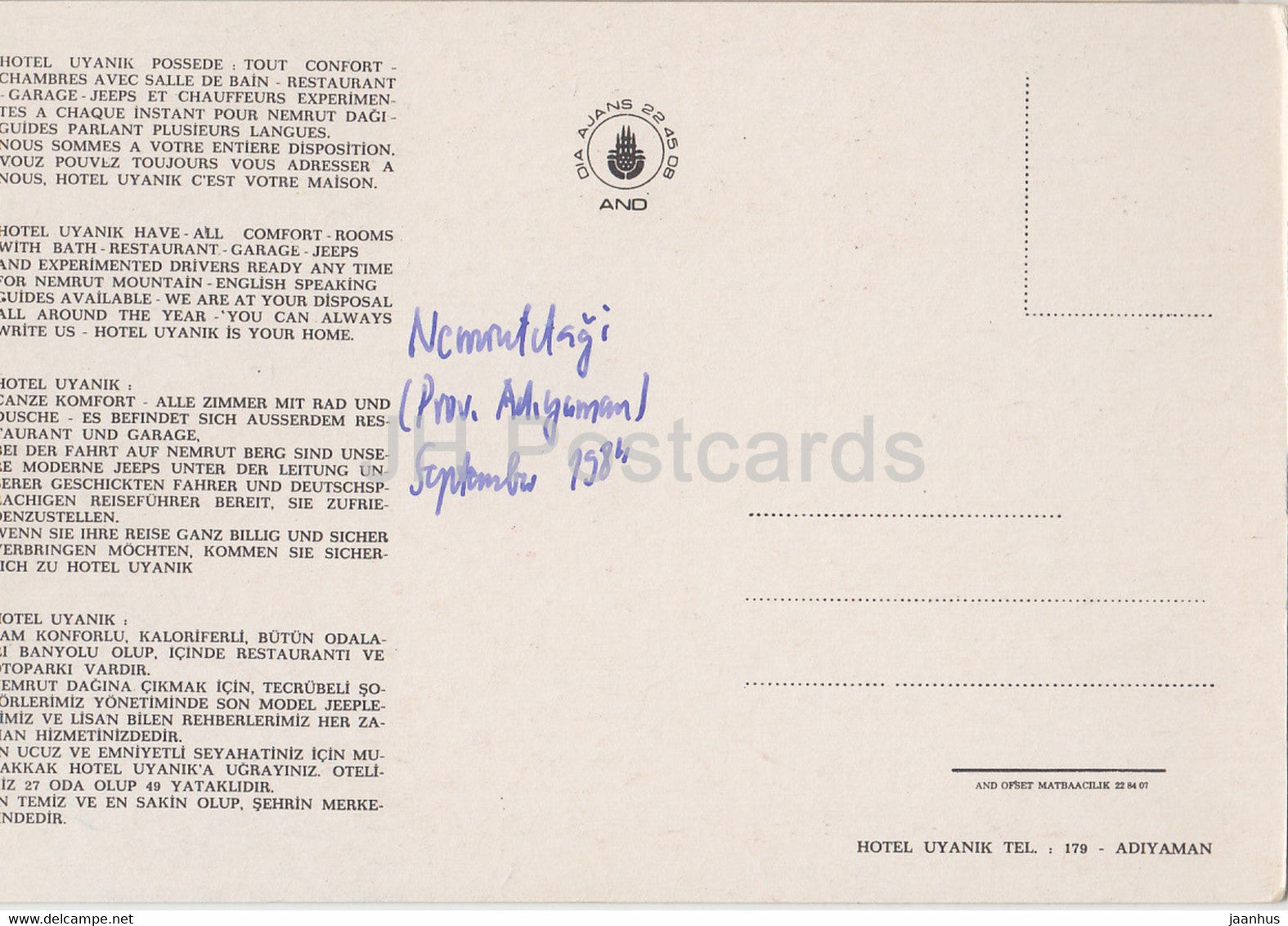 Adiyaman - Nemrut - Sculpture ancienne - hôtel Uyanik - 1984 - Turquie - d'occasion