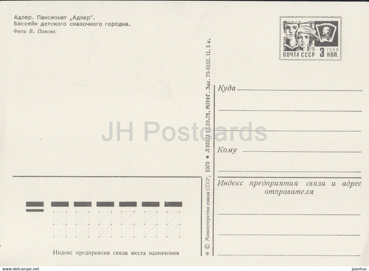 Adler - maison de retraite Adler - piscine de la ville de conte de fées pour enfants - 1 - entier postal - 1979 - Russie URSS - inutilisé