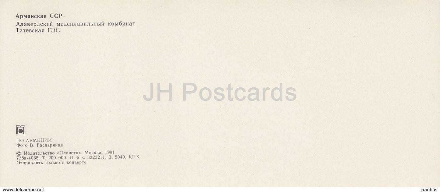 Usine de fusion de cuivre d’Alaverdi - Centrale hydroélectrique de Tatevskaya - 1981 - Arménie URSS - inutilisée