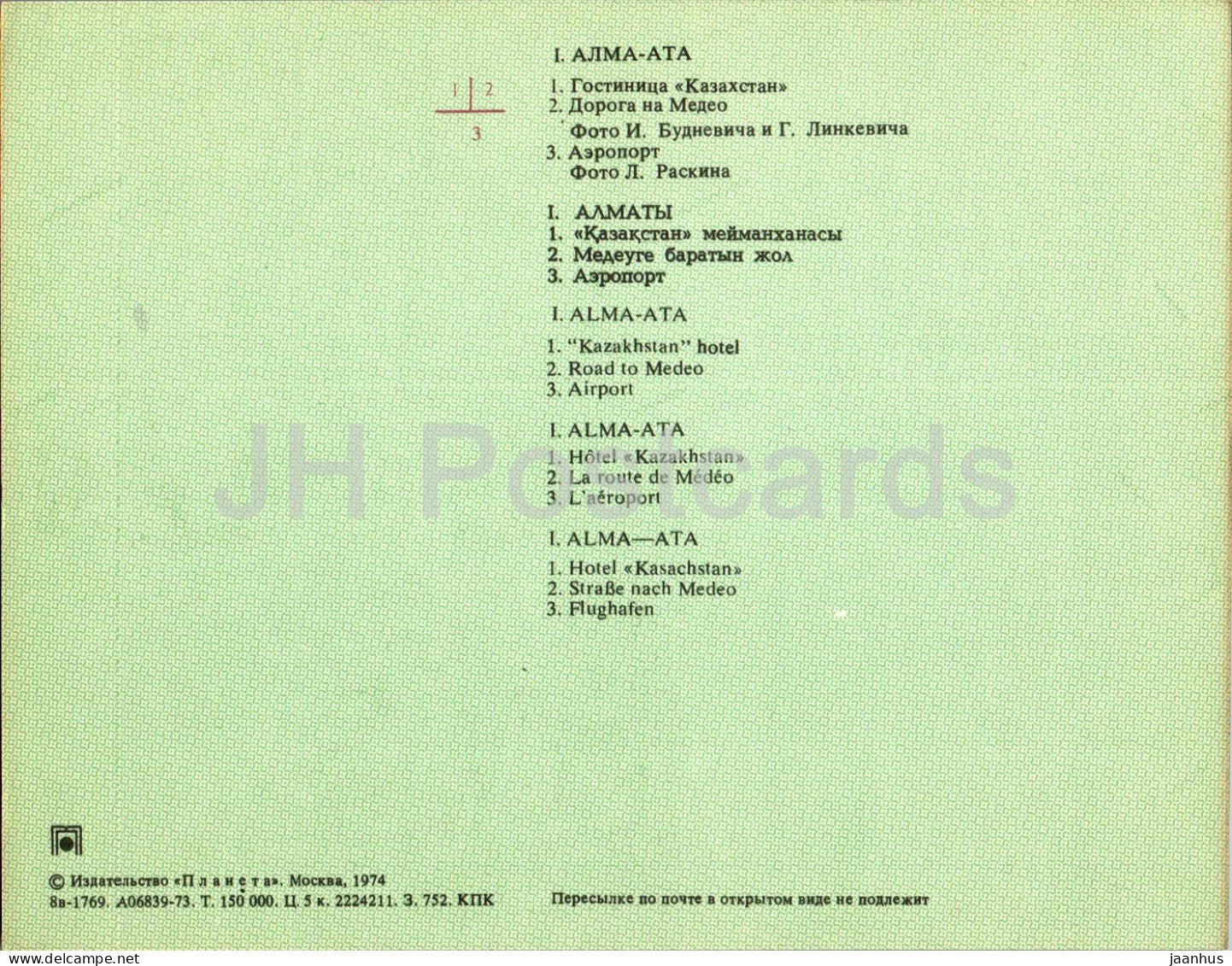 Almaty - Alma-Ata - hôtel Kazakhstan - Route de Medeo - aéroport - avion - voiture Volga - 1974 - Kazakhstan URSS - inutilisé