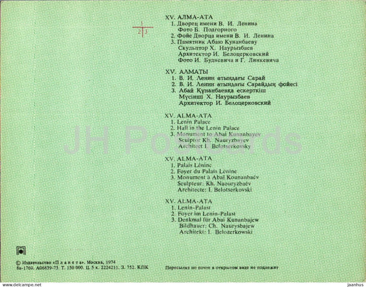 Almaty - Alma-Ata - Palais Lénine - hall - monument à Abai Kunabayev - 1974 - Kazakhstan URSS - inutilisé