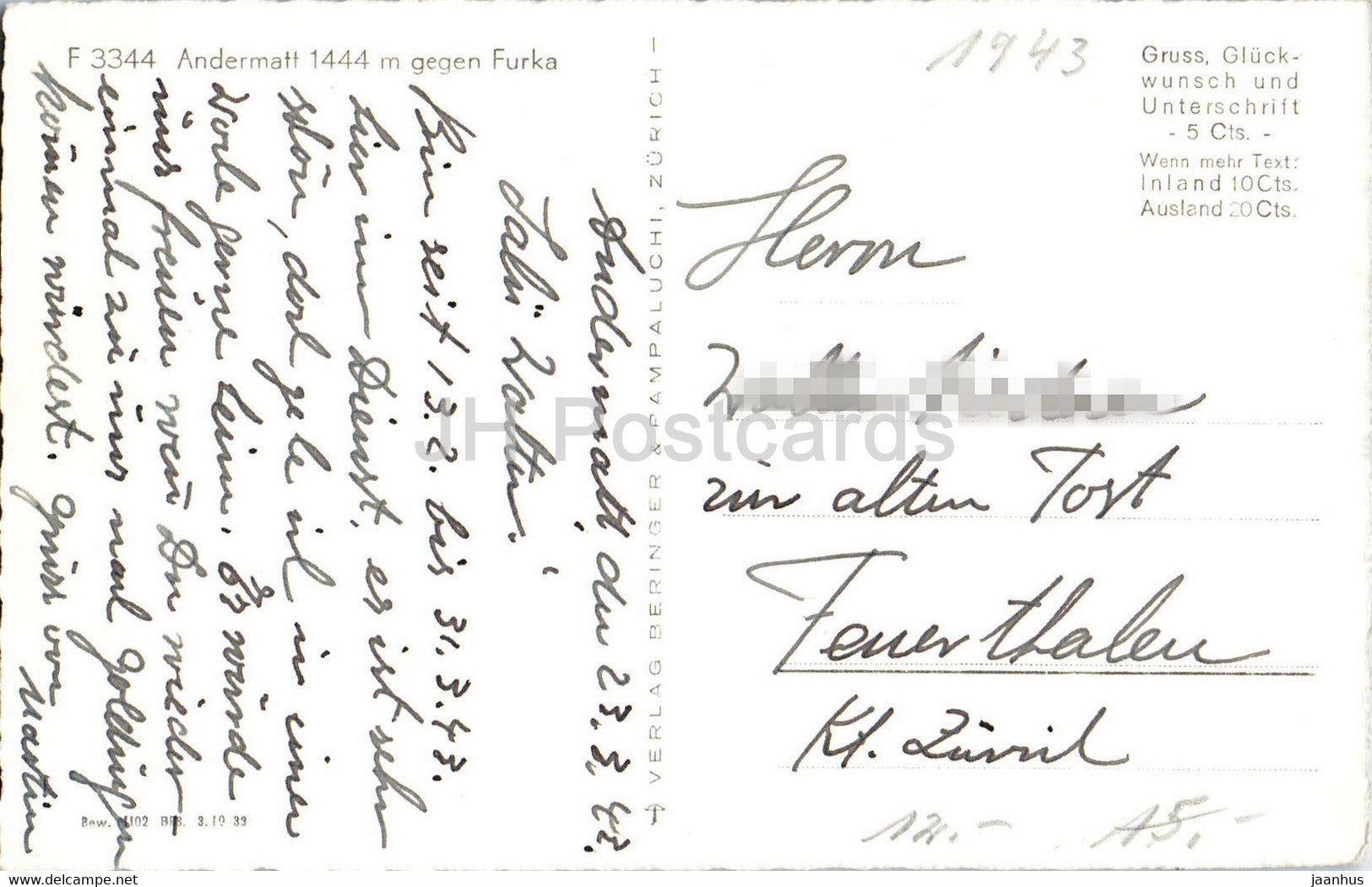 Andermatt 1444 m gegen Furka - F3344 - carte postale ancienne - 1943 - Suisse - utilisé