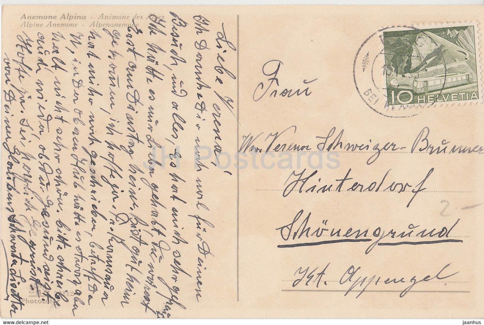 Anemone Alpina - Anémone alpine - Alpenanemone - fleurs - carte postale ancienne - 1953 - Suisse - utilisé