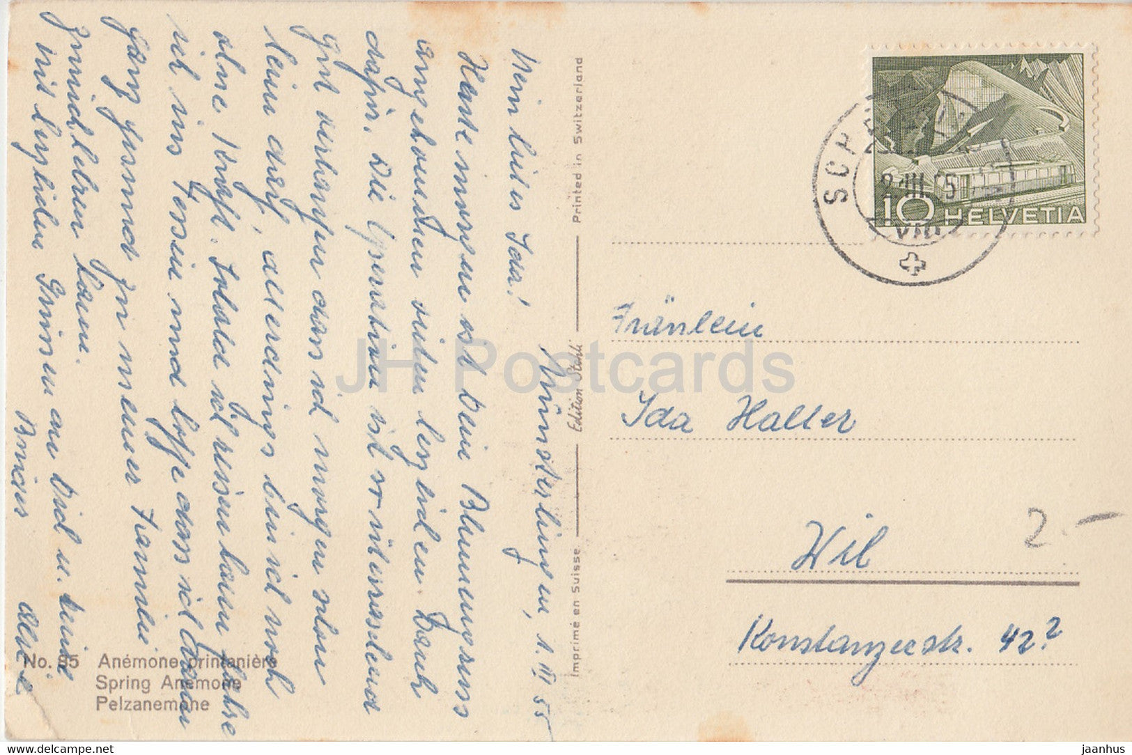 Anémone orintaniere - Anémone de printemps - Pelzanemone - fleurs - 85 - carte postale ancienne - 1951 - Suisse - utilisé