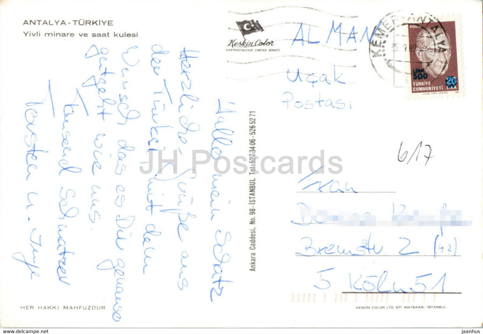 Antalya - Minaret cannelé et tour de l'horloge - Keskin - 1989 - Turquie - occasion