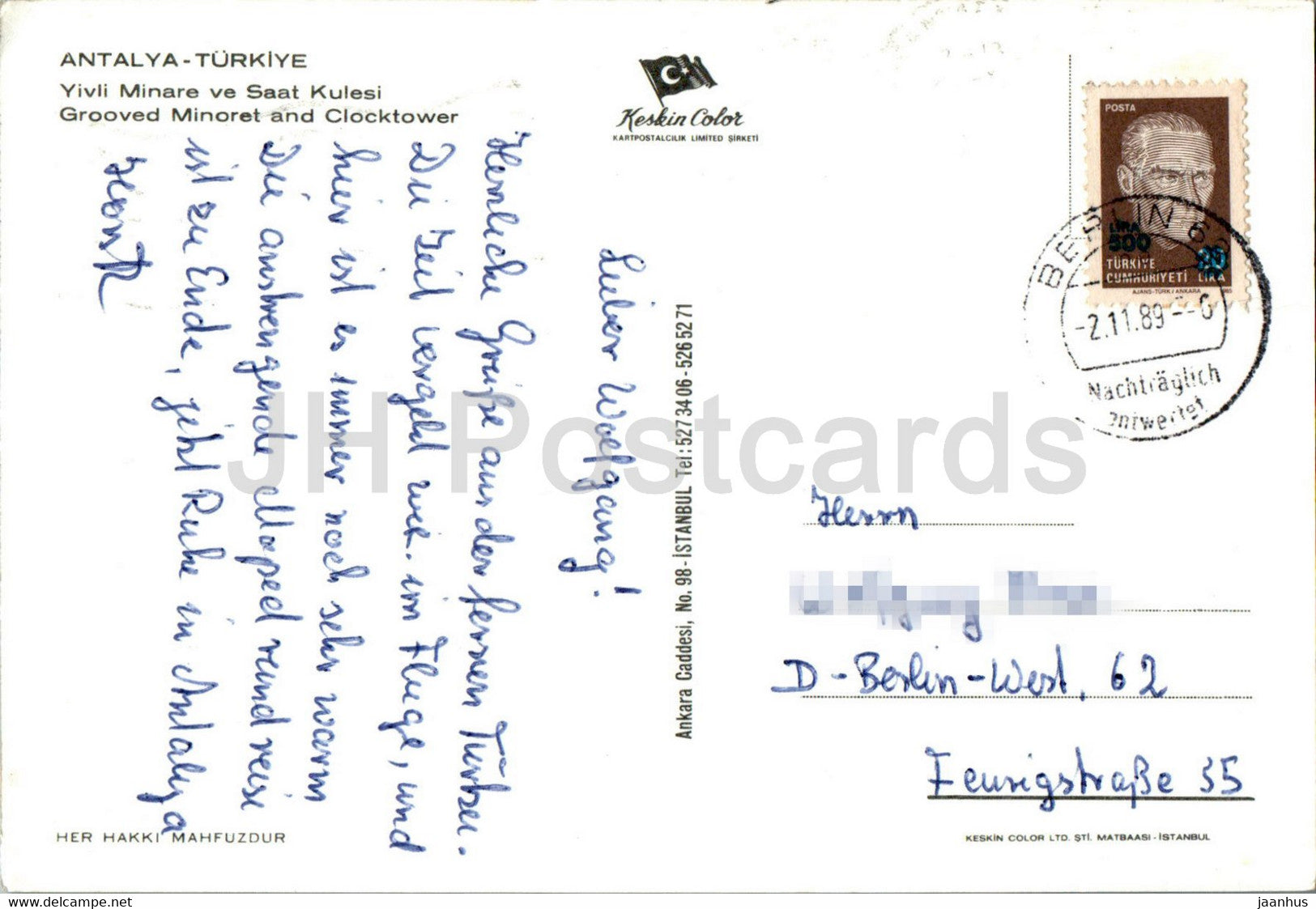 Antalya - Minaret rainuré et tour de l'horloge - Turquie - inutilisé