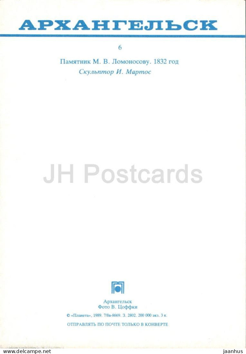 Arkhangelsk - monument à Lomonossov - 1989 - Russie URSS - inutilisé