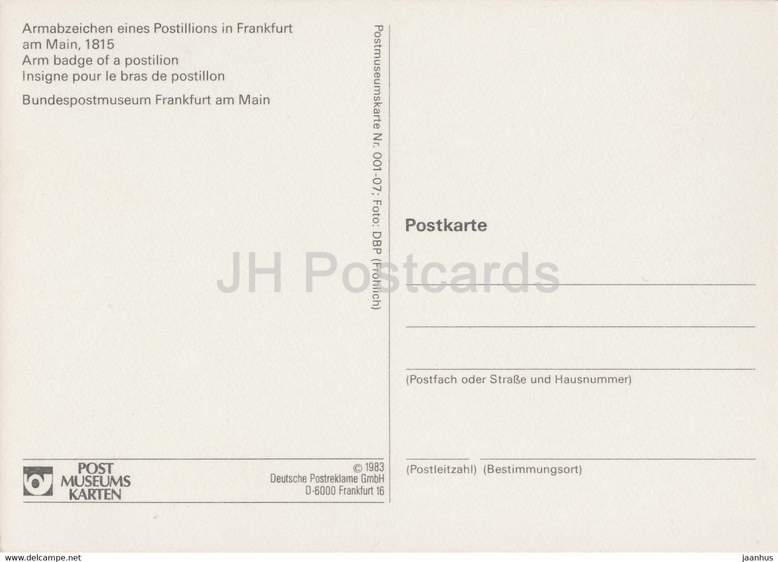 Armabzeichen eines Postillions à Francfort-sur-le-Main 1815 - Insigne de bras de facteur - 1983 - Allemagne - inutilisé