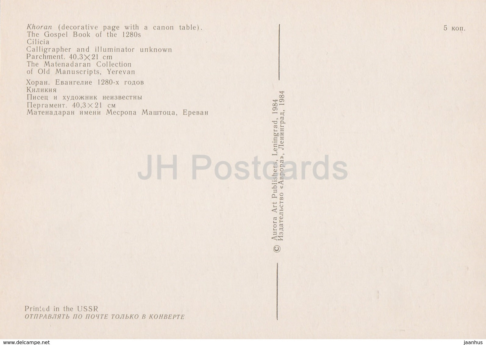 Miniatures arméniennes des XIIIe XIVe siècles - Khoran - Le Livre de l'Évangile - Cilicie - 1984 - Arménie URSS - inutilisé
