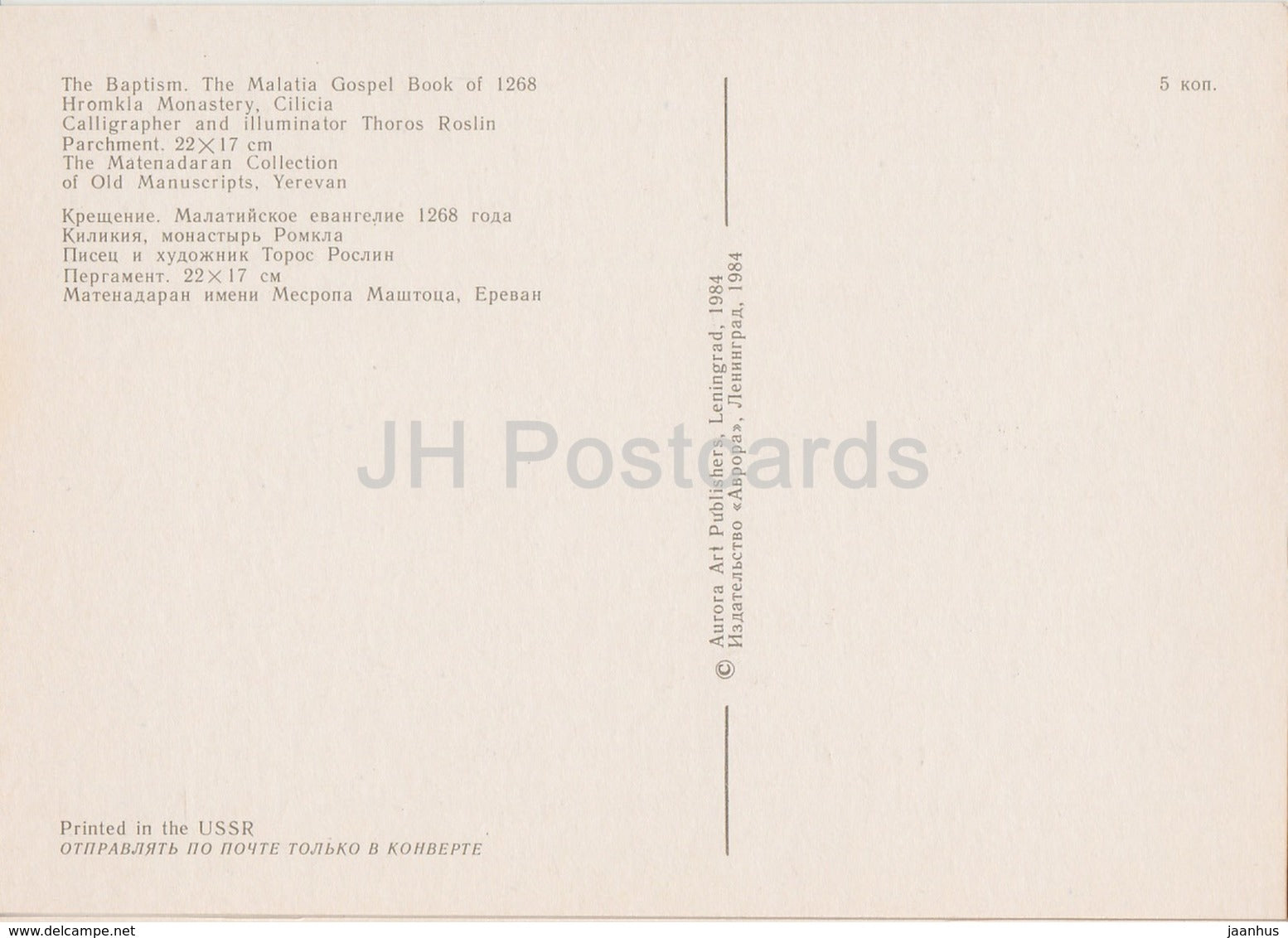 Miniatures arméniennes des XIIIe et XIVe siècles - Le Baptême - Malatia Gospel Book 1268 - 1984 - Arménie URSS - inutilisé