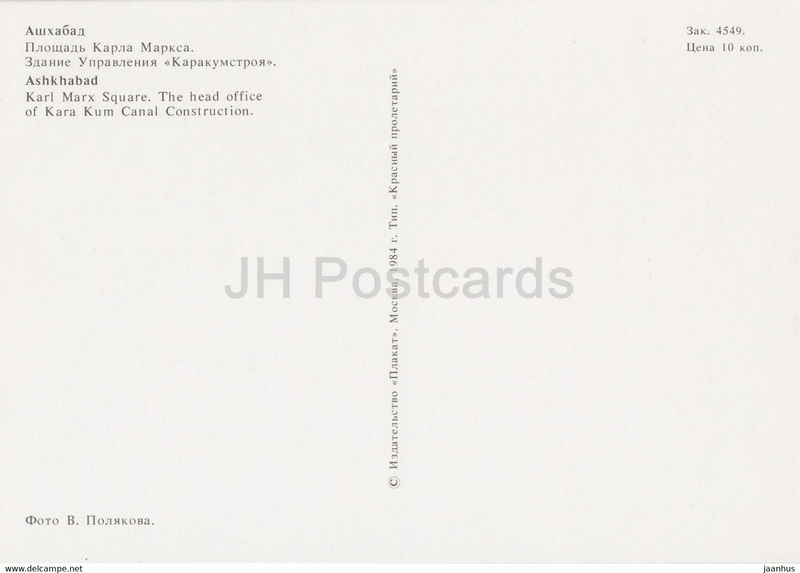 Achgabat - Achkhabad - Place Karl Marx - Siège social du canal Kara Kum - 1984 - Turkménistan URSS - inutilisé