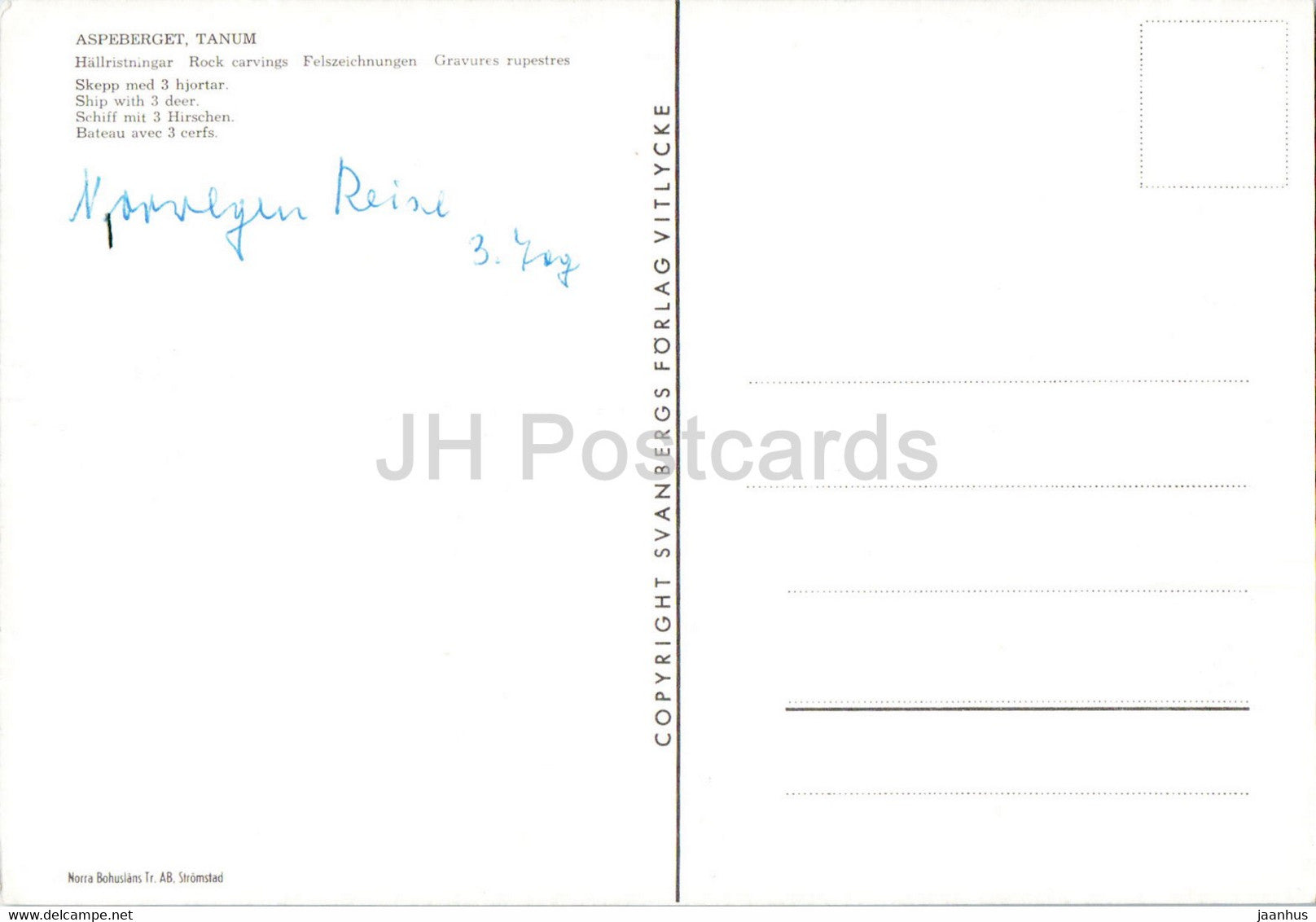 Aspeberget - Tanum - Sculptures rupestres - Navire avec 3 cerfs - monde antique - Suède - inutilisé