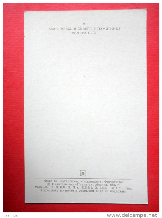Sur la place près du monument Rembrandt - Amsterdam - 1976 - Pays-Bas - inutilisé