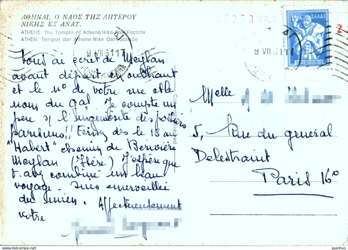 Athènes - Façade Est du Temple d'Athéna Nike - monde antique - 1961 - Grèce - utilisé