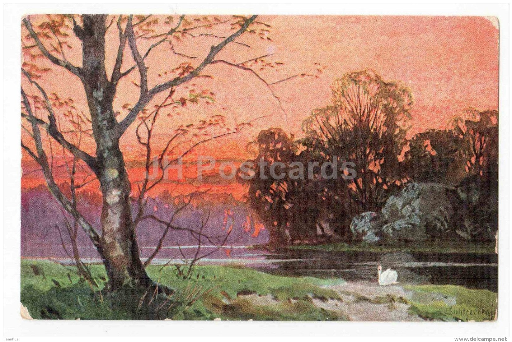 paysage d'automne - cygne - illustration - TSN - diffusé en Estonie Abja 1926