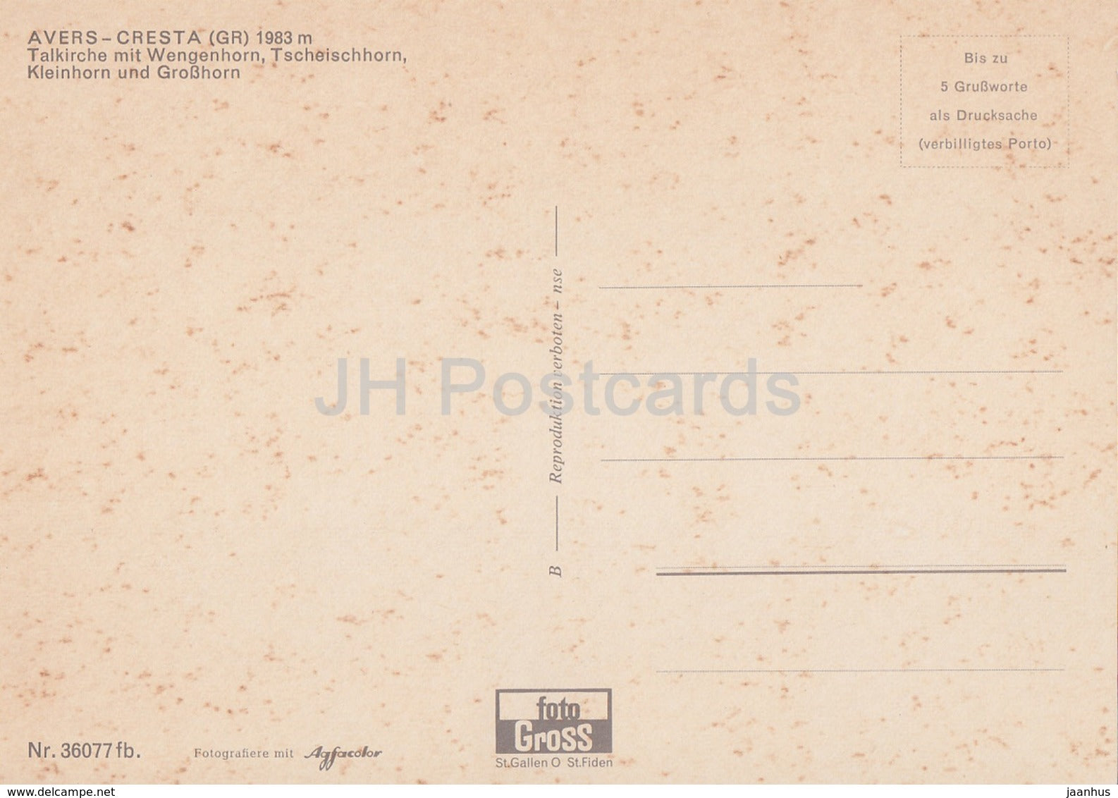 Avers Cresta 1983 m - Talkirche mit Wengenhorn - Tscheischhorn - Kleinhorn - Grosshorn - Suisse - inutilisé